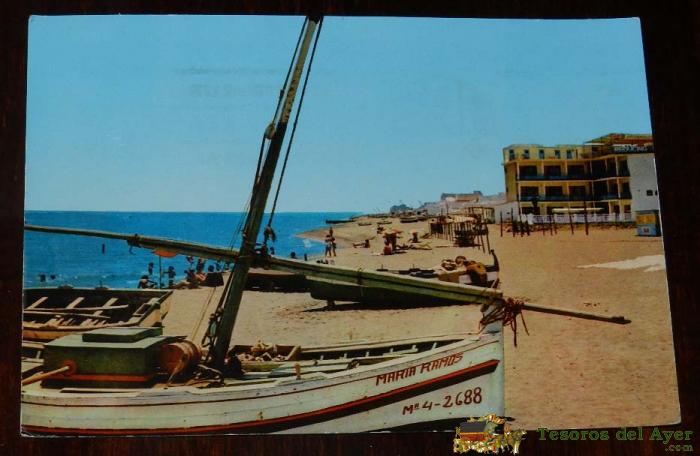 FOTO POSTAL DE MALAGA. TORREMOLINOS, COSTA DEL SOL. PLAYA DE LA CARIHUELA. ED. ALARDE Nº 8. CIRCULADA EN 1963.