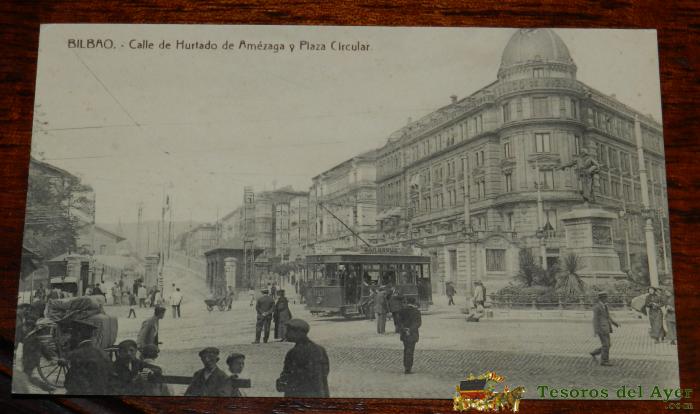 ANTIGUA POSTAL DE BILBAO, CALLE DE HURTADO DE AMEZAGA Y PLAZA CIRCULAR, ED. LIBRERIA E. VERDES, NO CIRCULADA.