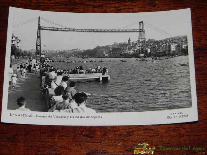 ANTIGUA FOTO POSTAL DE LAS ARENAS, PUENTE DE VIZCAYA Y RIA, VIZCAYA, ED. MANIPEL, NO CIRCULADA.