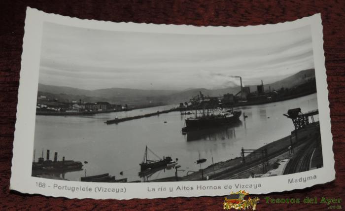 FOTO POSTAL DE PORTUGALETE, VIZCAYA, N.168, LA RIA Y ALTOS HORNOS, ED. MADYMA, NO CIRCULADA.