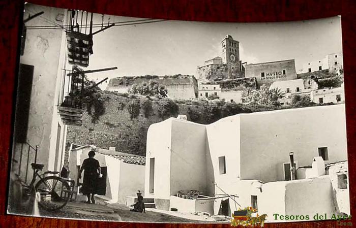 ANTIGUA FOTO POSTAL DE IBIZA (BALEARES) PARTE ALTA DE LA CIUDAD Y CASA TIPICA - FOTO VIÑETS . CIRCULADA