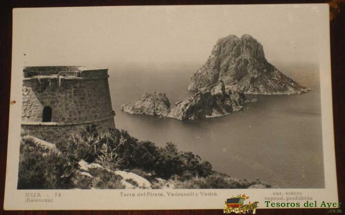 ANTIGUA FOTO POSTAL DE IBIZA (BALEARES) TORRE DEL PIRATA VEDRANELL Y VEDRA - FOTOGRAFIA VIÑETS - SIN CIRCULAR