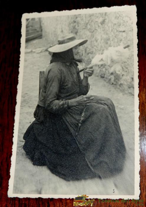 FOTO POSTAL DE IBIZA. VIEJA CAMPESINA HILANDO LANA, N. 114, NO CIRCULADA.