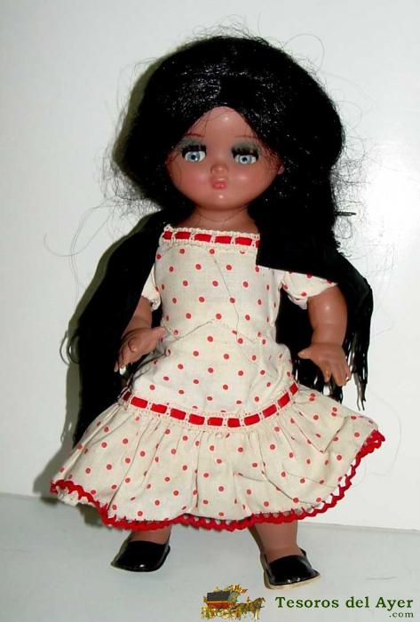 ANTIGUA MUÑECA LINDA PIRULA CON TRAJE REGIONAL VALENCIANA, FALLERA, EL OJO IZQUIERDO SE LE METE UN POCO.