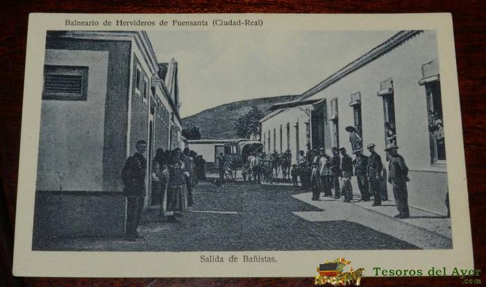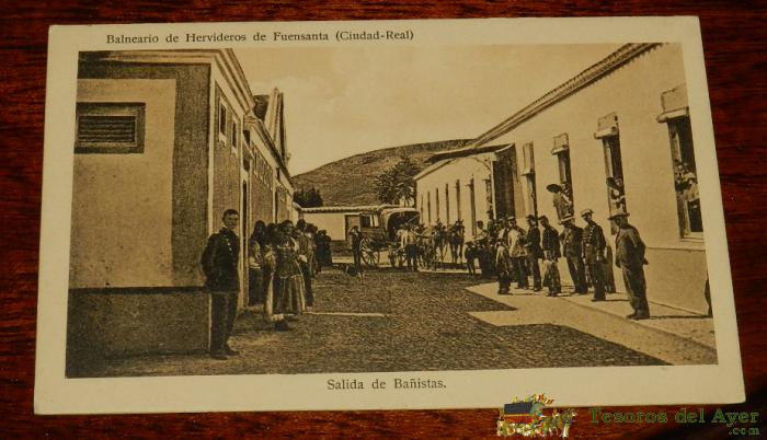 POSTAL DEL BALNEARIO DE HERVIDEROS DE FUENSANTA - CIUDAD REAL - SALIDA DE BAÑISTAS - ED. J.B.S.M. - NO CIRCULADA.