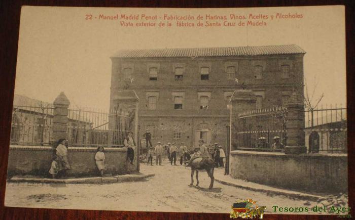 ANTIGUA POSTAL DE SANTA CRUZ DE MUDELA (CIUDAD REAL) MANUEL MADRID PENOT - FABRICACION DE HARINAS, ACEITES, VINOS Y ALCOHOLES, VISTA EXTEROPR DE SU FABRICA - CASTAÑEIRA. SIN CIRCULAR