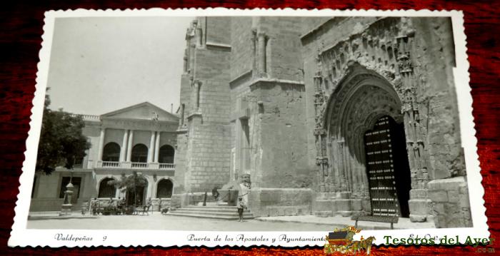 FOTO POSTAL DE VALDEPEÑAS, N.9, PUERTA DE LOS APOSTOLES Y AYUNTAMIENTO, ED. ORTIZ, NO CIRCULADA.