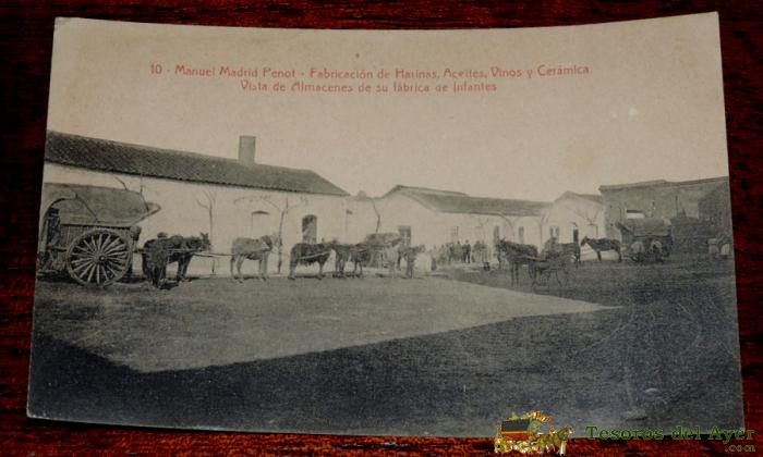 ANTIGUA POSTAL DE INFANTES (CIUDAD REAL) - MANUEL MADRID PENOT - FABRICACION DE HARINAS, ACEITES, VINOS Y CERAMICA - VISTA DE ALMACENES DE SU FABRICA DE INFANTES - CASTAÑEIRA . SIN CIRCULAR