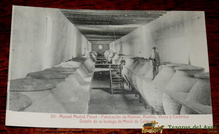 ANTIGUA POSTAL DE MORAL DE CALATRAVA (CIUDAD REAL) - MANUEL MADRID PENOT - FABRICACION DE HARINAS, ACEITES, VINOS Y CERAMICA - DETALLE DE SU BODEGA - CASTAÑEIRA . SIN CIRCULAR