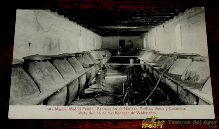 ANTIGUA POSTAL DE VALDEPEÑAS (CIUDAD REAL) - MANUEL MADRID PENOT - FABRICACION DE HARINAS, ACEITES, VINOS Y CERAMICA - VISTA DE UNA DE SUS BODEGAS - CASTAÑEIRA . SIN CIRCULAR