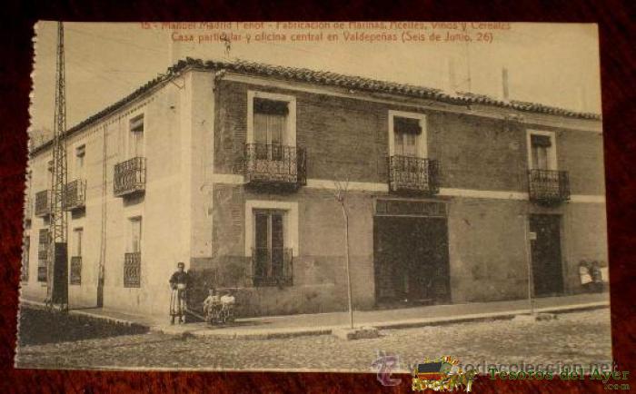ANTIGUA POSTAL DE VALDEPEÑAS (CIUDAD REAL) - MANUEL MADRID PENOT - FABRICACION DE HARINAS, ACEITES, VINOS Y CERAMICA - CASA PARTICULAR Y OFICINA CENTRAL - CASTAÑEIRA . SIN CIRCULAR