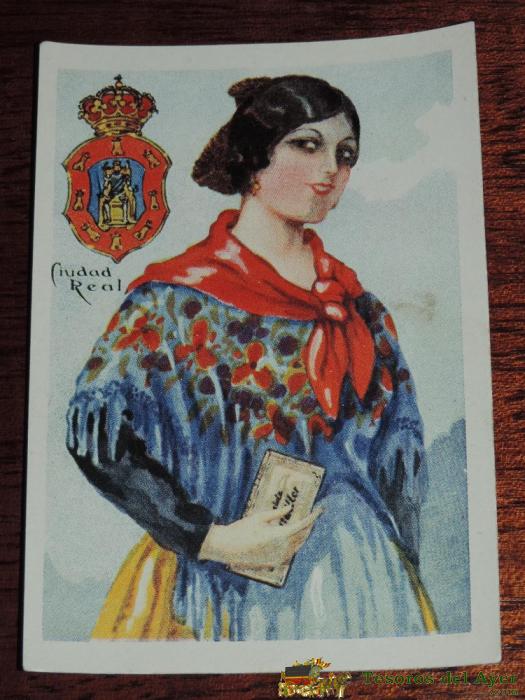 CROMO CIUDAD REAL, TRAJE REGIONAL, OBSEQUIO DEL CHOCOLATE AMATLLER, MIDE 10,6 X 7,5 CMS.
