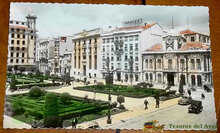 ANTIGUA FOTO POSTAL DE ALBACETE - PLAZA DEL CAUDILLO, JARDINES . GARRABELLA . ESCRITA EN 1956