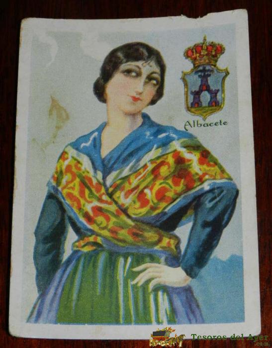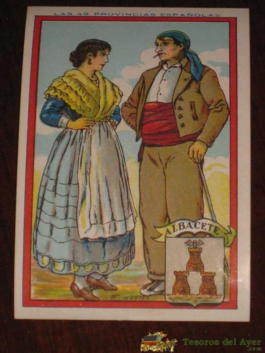 ANTIGUO CROMO DE TRAJES REGIONALES DE ALBACETE - PUBLICIDAD DE CHOCOLATES AMATLLER - MIDE UN POQUITO MENOS QUE UNA POSTAL 10 X 6,8 CMS.