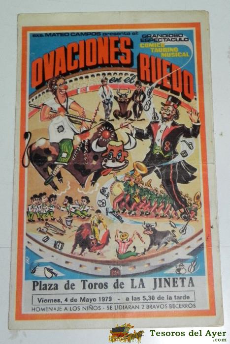 ANTIGUO PROGRAMA DEL GRANDIOSO ESPECTACULO TAURINO MUSICAL, OVACIONES EN EL RUEDO, PLAZA DE TOROS DE LA JINETA, ALBACETE, 4 DE MAYO DE 1979, 4 PAG, MIDE 22,5 X 14 CMS.