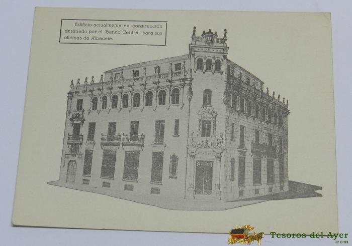 LAMINA CON LA IMAGEN DEL EDIFICIO ACTUALMENTE EN CONSTRUCCION DESTINADO AL BANCO CENTRAL DE ALBACETE, MIDE 14 X 10,5 CMS. REALIZADO EN CARTULINA.