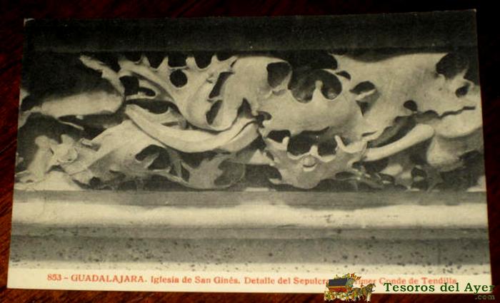 ANTIGUA POSTAL DE GUADALAJARA, IGLESIA DE SAN GINES, DETALLE DEL SEPULCRO DEL PRIMER CONDE DE TENDILLA - Nº 853 JOYAS DE SPAÑA, EDICION ALMIRALL - PALOMEQUE MADRID, THOMAS, SIN CIRCULAR