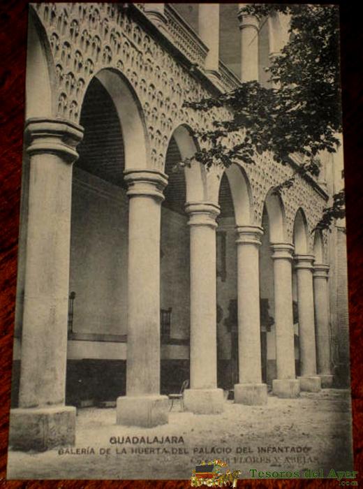 ANTIGUA POSTAL DE GUADALAJARA, GALERÍA DE LA HUERTA DEL PALACIO DEL INFANTADO. COLECCIÓN FLORES Y ABEJAS. HAUSER Y MENET, SIN CIRCULAR
