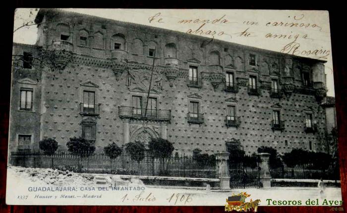 ANTIGUA POSTAL DE GUADALAJARA, CASA DEL INFANTADO, 1337 HAUSER Y MENET, CIRCULADA.