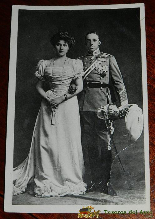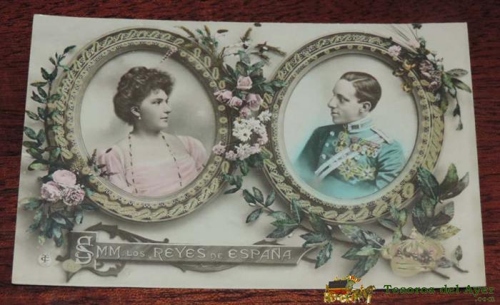 ANTIGUA FOTO POSTAL S.A.R. ALFONSO XIII Y VICTORIA EUGENIA DE BATTENBERG, CIRCULADA.