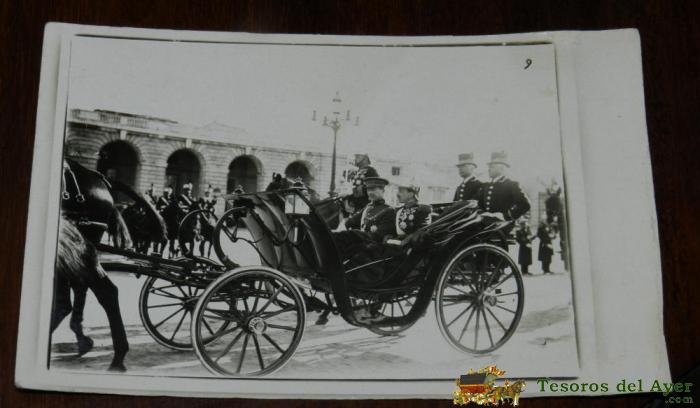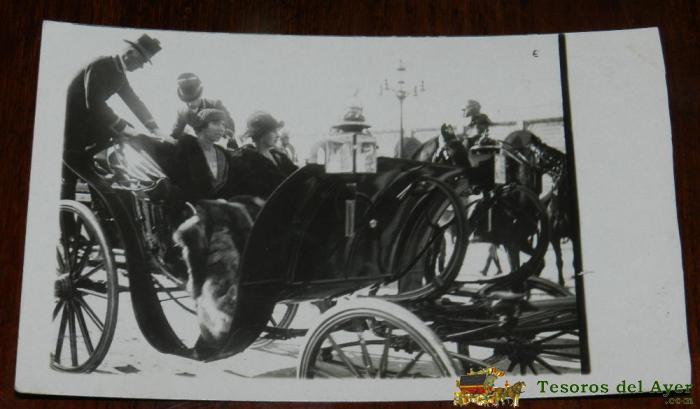 ANTIGUA FOTO POSTAL, LA REINA VICTORIA EUGENIA EN UN COCHE DE CABALLOS, SIN EDITORIAL, NO CIRCULADA