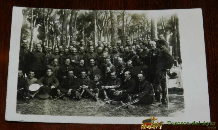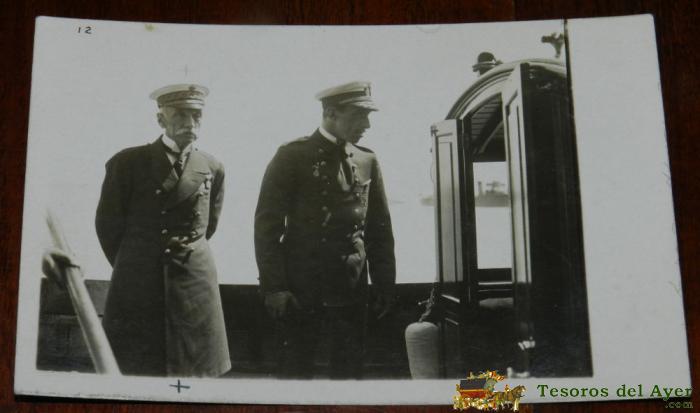 ANTIGUA FOTO POSTAL, LEL REY ALFONSO XIII EN UNA FOTO POSANDO CON MAS MILITARES, SIN EDITORIAL, NO CIRCULADA