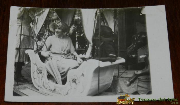 ANTIGUA FOTO POSTAL, LA REINA VICTORIA EUGENIA EN UN CARROUSEL, SIN EDITORIAL, NO CIRCULADA