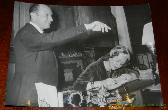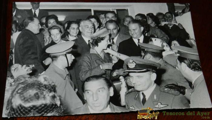 ANTIGUA FOTOGRAFIA DE LA REINA FABIOLA DE MORA Y ARAGON, EN SU VISITA A MADRID EN 1960, JUSTO ANTES DE CASARSE CON BALDUINO, MIDE 24 X 18 CMS. FOTO MARTIN SANTOS YUBERO.