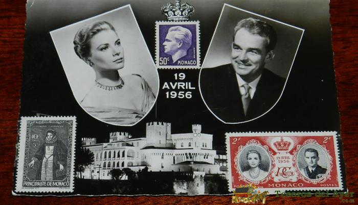 ANTIGUA FOTO POSTAL DE MONACO, BODA DE RAINIERO Y GRACE, CLICHES HARCOURT ET PICEDI, SIN CIRCULAR