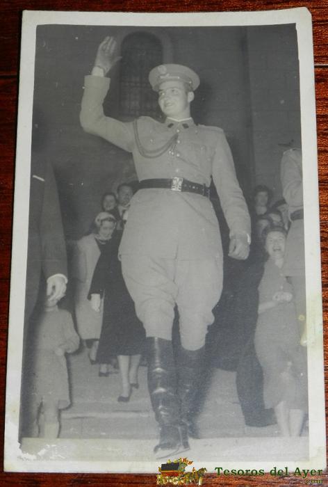 ANTIGUA FOTOGRAFIA DE JUAN CARLOS I DE BORBóN (ROMA, ITALIA, 5 DE ENERO DE 1938) REY DE ESPAñA. FECHADA EL 26 DE ABRIL DE 1957 EN RECUERDO DE SU VISITA CUANDO ERA PRINCIPE A VITORIA, MIDE 13,7 X 8,6 CMS.
