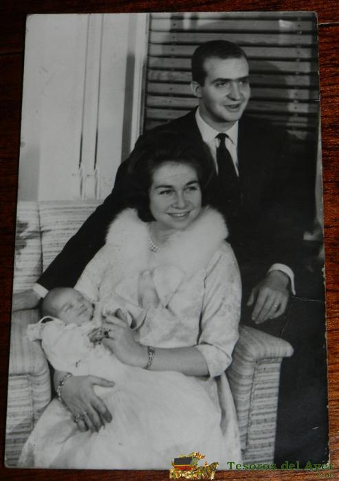 ANTIGUA FOTOGRAFIA DE JUAN CARLOS I DE BORBóN Y DOñA SOFIA, JUNTO CON SU PRIMERA HIJA, 1962, CUANDO AMBOS ERAN TODAVIA PRINCIPES, MIDE 14 X 9 CMS.