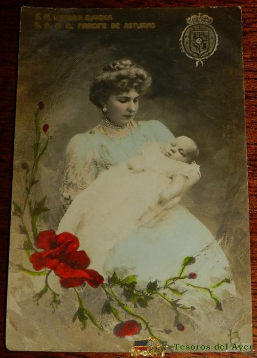 ANTIGUA FOTO POSTAL DE S.M. VICTORIA EUGENIA, S.A.R. EL PRINCIPE DE ASTURIAS, FAMILIA REAL NUM. 25, ED. L.B. NO CIRCULADA, ESCRITA.
