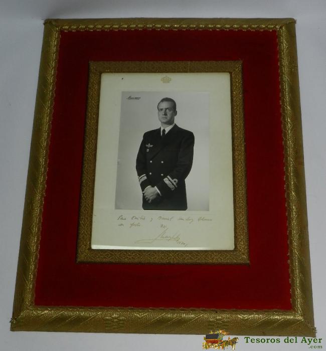 ANTIGUA FOTOGRAFIA DE JUAN CARLOS I REY DE ESPAÑA CUANDO TODAVIA ERA PRINCIPE EN 1970, CON DEDICATORIA Y FIRMA AUTOGRAFA MANUSCRITA,ENMARCADA. MIDE 47 X 38,5 CMS. EXCEPCIONAL.