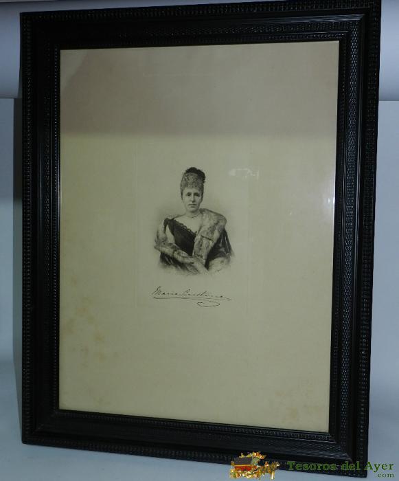 GRABADO DE REINA MARIA CRISTINA Y FIRMADO POR ELLA. DE BARTOLOMé MAURA (HERMANO DE POLITICO), GRABADO ORIGINAL DE REINA MARIA CRISTINA, HECHO POR BARTOLOMé MAURA (HERMANO DEL FAMOSO POLITICO ESPAñOL ANTONIO MAURA). ORIGINAL DE S.XIX. ES DE GRAN TAMAñO, MI