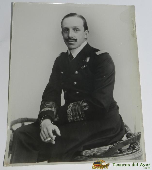 ANTIGUA FOTOGRAFIA DE ALFONSO XIII CON UNIFORME DE ALMIRANTE, MUY GRANDE MIDE 23,5 X 17,5 CMS. ORIGINAL.