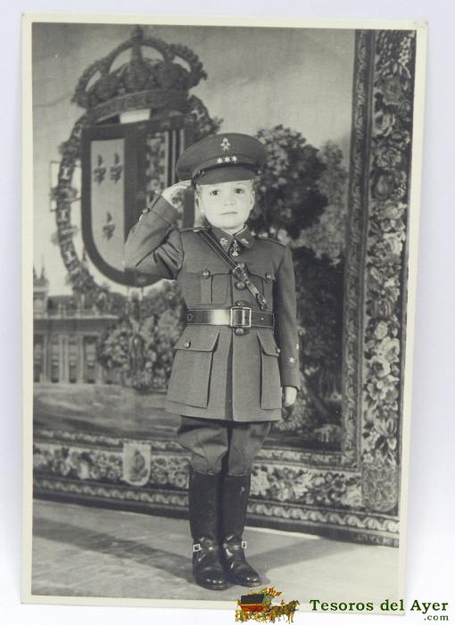 ANTIGUA Y EXCEPCIONAL FOTOGRAFIA DE JUAN CARLOS I REY DE ESPAÑA SIENDO NIÑO CON UNIFORME DE CAPITAN DE CABALLERIA, A LOS 5 AÑOS APROXIMADAMENTE, PRECIOSA FOTOGRAFIA ENMARCADA, MIDE 17,5 X 11,5 CMS