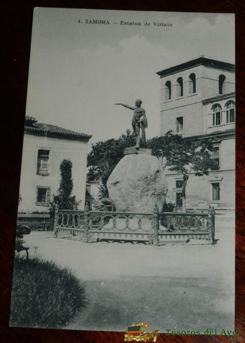 ANTIGUA POSTAL DE ZAMORA, ESTATUA DE VIRIATO, N. 4, ED. MARIANO PRIETO, NO CIRCULADA.