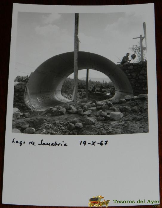 ANTIGUA FOTOGRAFIA DE OBRAS DE CANALIZACION EN EL LAGO DE SANABRIA, ZAMORA, AÑO 1967, MIDE 13 X 9 CMS.