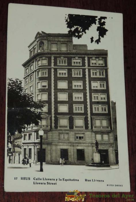 FOTO POSTAL DE REUS, TARRAGONA, CALLE LLOVERA Y LA EQUITATIVA, Nº 17 EDITADA POR FOT. DEGEY. NO CIRCULADA.
