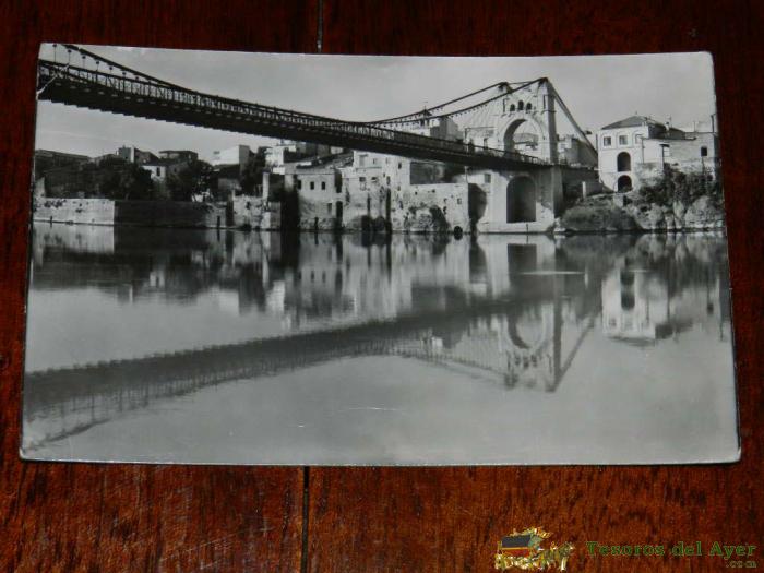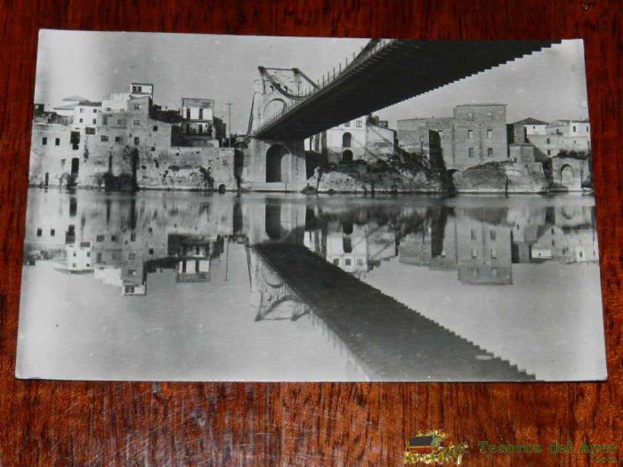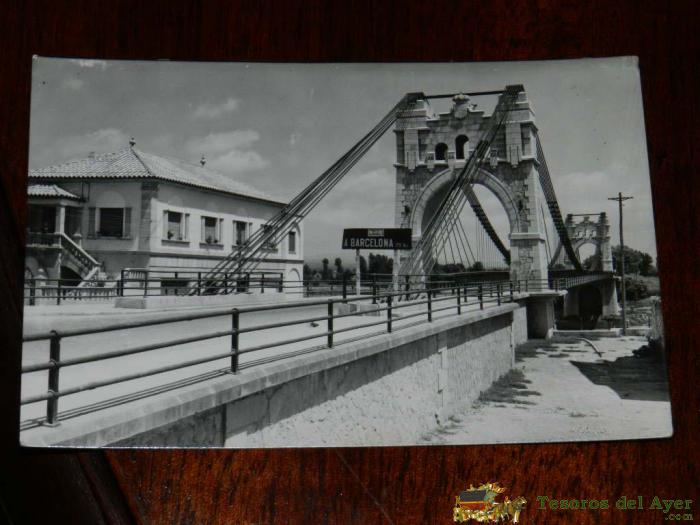 ANTIGUA FOTO POSTAL DE AMPOSTA, TARRAGONA, UNA VISTA DEL PUENTE COLGANTE, N.12, ED. LIBRERIA ROIG, FOT. GONDRA, NO CIRCULADA.