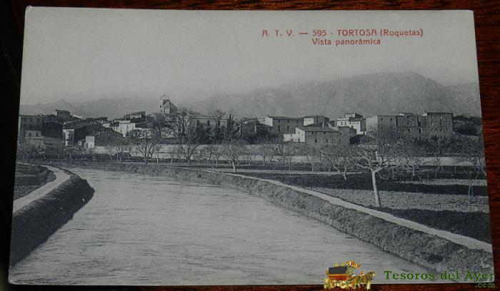ANTIGUA POSTAL DE TORTOSA (TARRAGONA): ROQUETAS - A.T.V.- 595 - VISTA PANORAMICA - SIN CIRCULAR