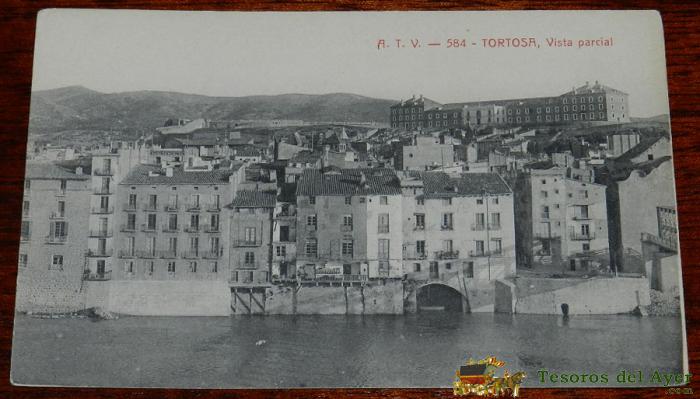 ANTIGUA POSTAL DE TORTOSA (TARRAGONA): A.T.V. Nº 584 -VISTA PARCIAL, ED.ANGEL TOLDRA VIAZO BARCELONA, SIN CIRCULAR