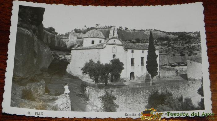 ANTIGUA FOTO POSTAL DE FLIX, TARRAGONA, N. 11, ERMITA DE NUESTRA SEÑORA DEL REMEDIO, NO CIRCULADA. ED. ARRIBAS.