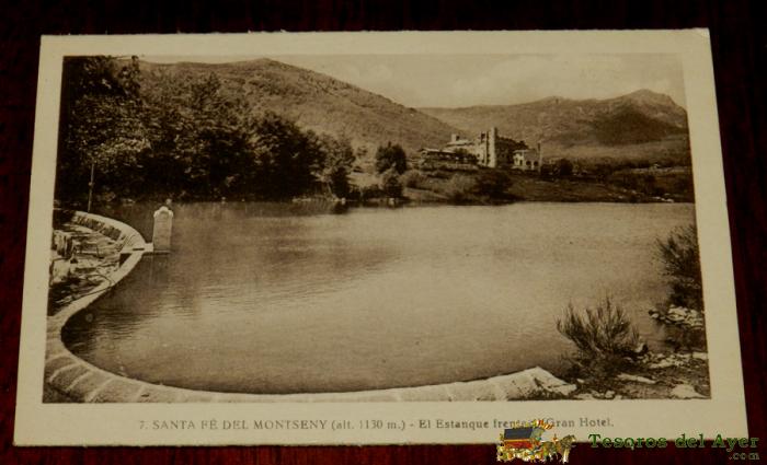 ANTIGUA POSTAL DE SANTA FE DE MONTSENY (BARCELONA) EL ESTANQUE FRENTE AL GRAN HOTEL, ROISIN 7, SIN CIRCULAR