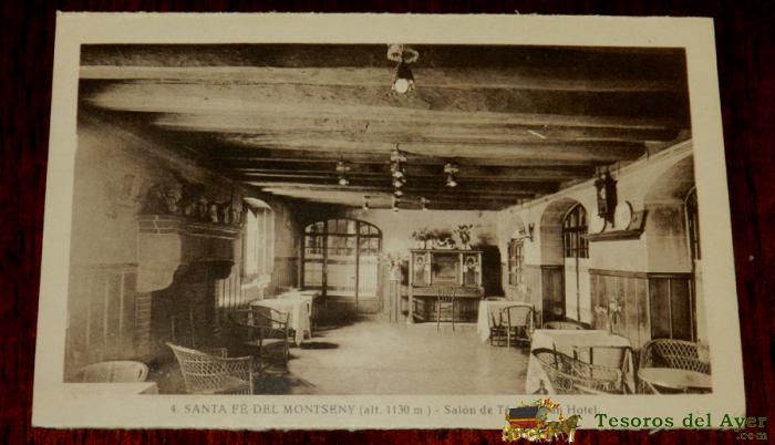 ANTIGUA POSTAL DE SANTA FE DE MONTSENY (BARCELONA) SALON DE TE DEL GRAN HOTEL, ROISIN 4, SIN CIRCULAR