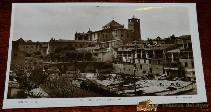ANTIGUA FOTO POSTAL DE VICH, N. 3, BARCELONA, PUENTE ROMANICO Y CATEDRAL, NO CIRCULADA, FOTO ROBERT.