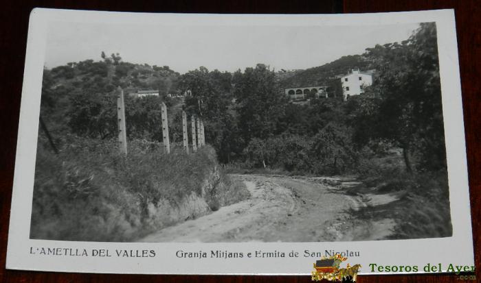ANTIGUA FOTO POSTAL DE LAMETLLA DEL VALLES, BARCELONA, GRANJA MIRJANS E ERMITA DE SAN NICOLAU, CIRCULADA.
