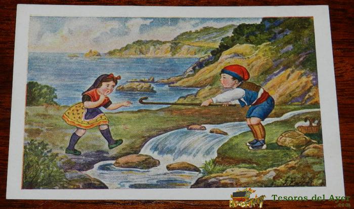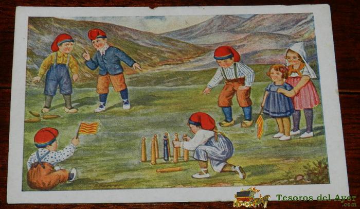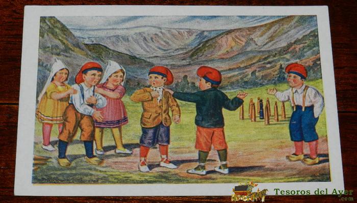 ANTIGUA POSTAL DE EDICIONES CATALANES, BARCELONA, SERIE JUGANT A BITLLES, N. 13, NO CIRCULADA.