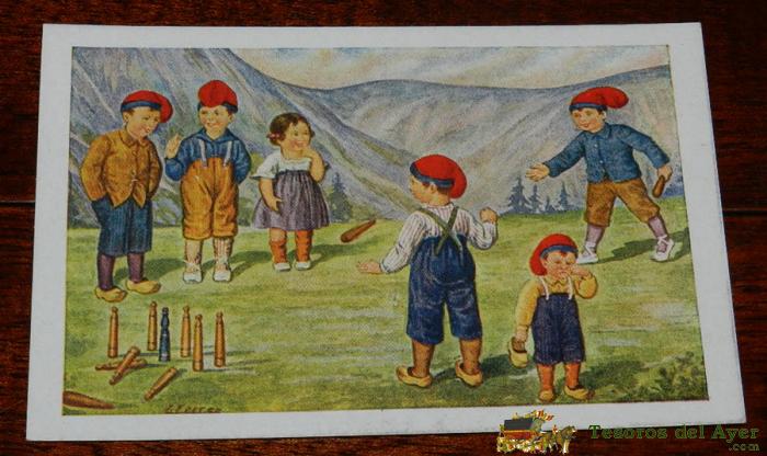 ANTIGUA POSTAL DE EDICIONES CATALANES, BARCELONA, SERIE JUGANT A BITLLES, N. 14, NO CIRCULADA.