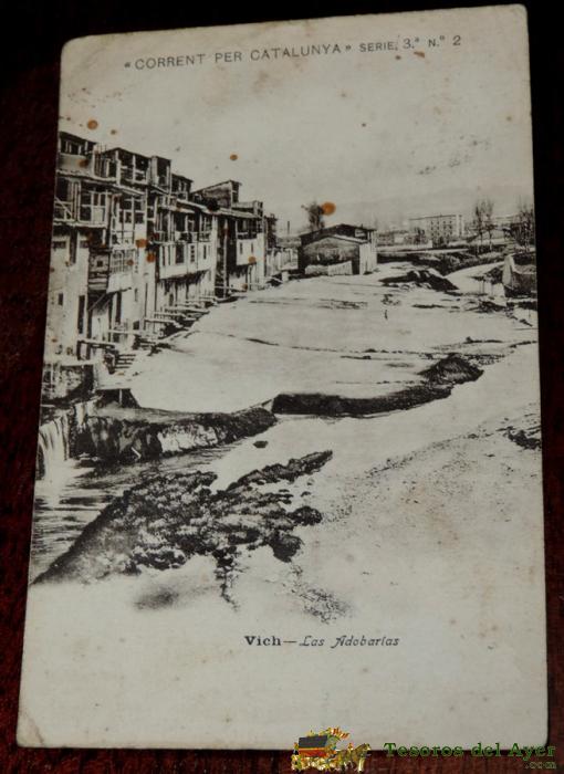 ANTIGUA POSTAL DE VICH (BARCELONA) LAS ADOBARIAS, CORRENT PER CATALUNYA, SERIE 3 Nº 2 - TIP. LIT. CUNILL, CIRCULADA.